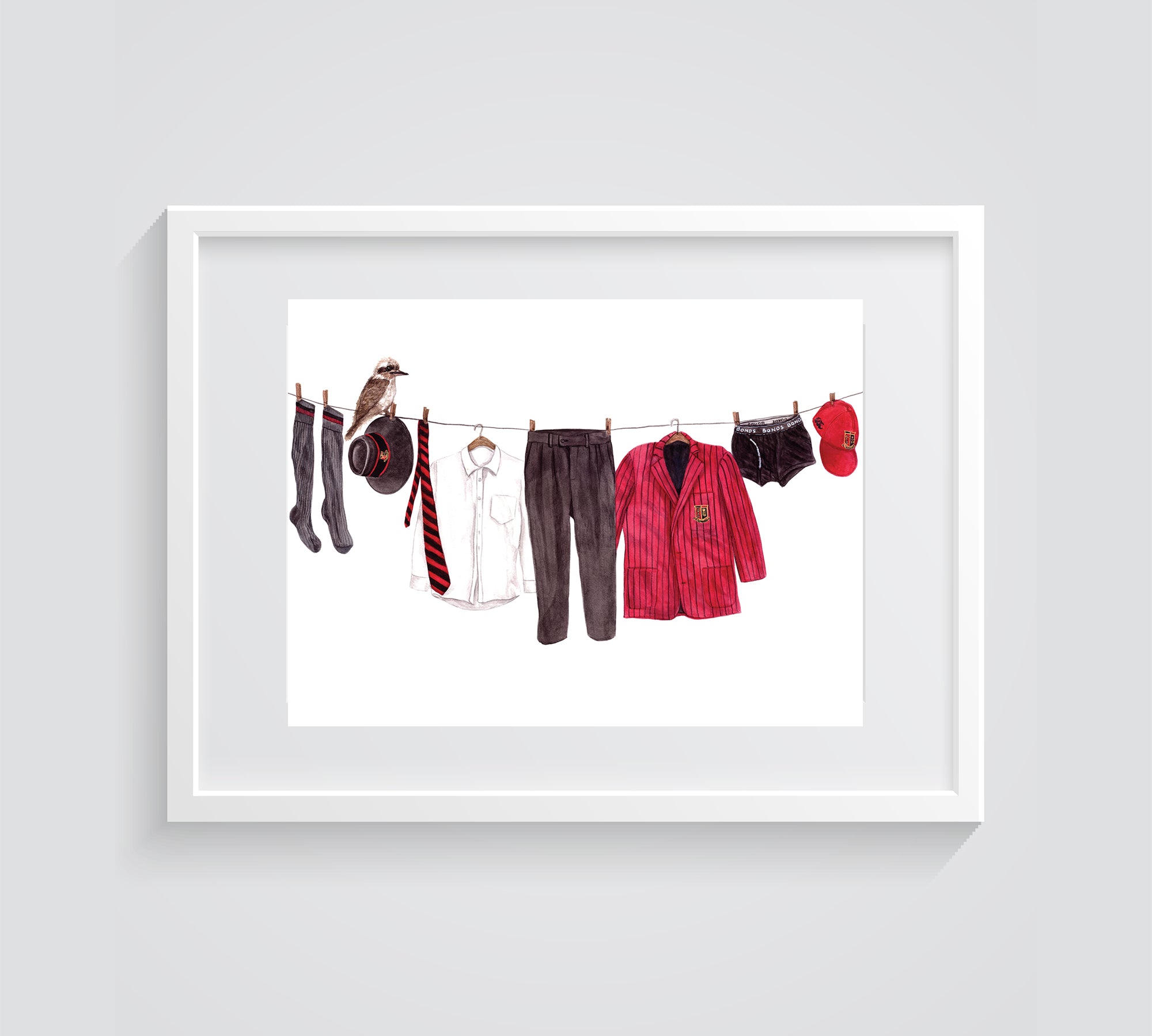 Brisbane Boys College BBC cricket print. Painting of cricket bat, ball, gloves, wicket and BBC green, black and white baggy cap.An Art Print of my original watercolour painting.Printed on 285gsm...